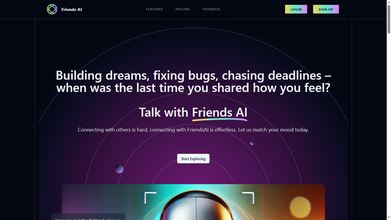 AI-based virtual friend that understands emotions and provides meaningful conversations powered by advanced language models. User can interact with voice and live chat mode in premium sectio